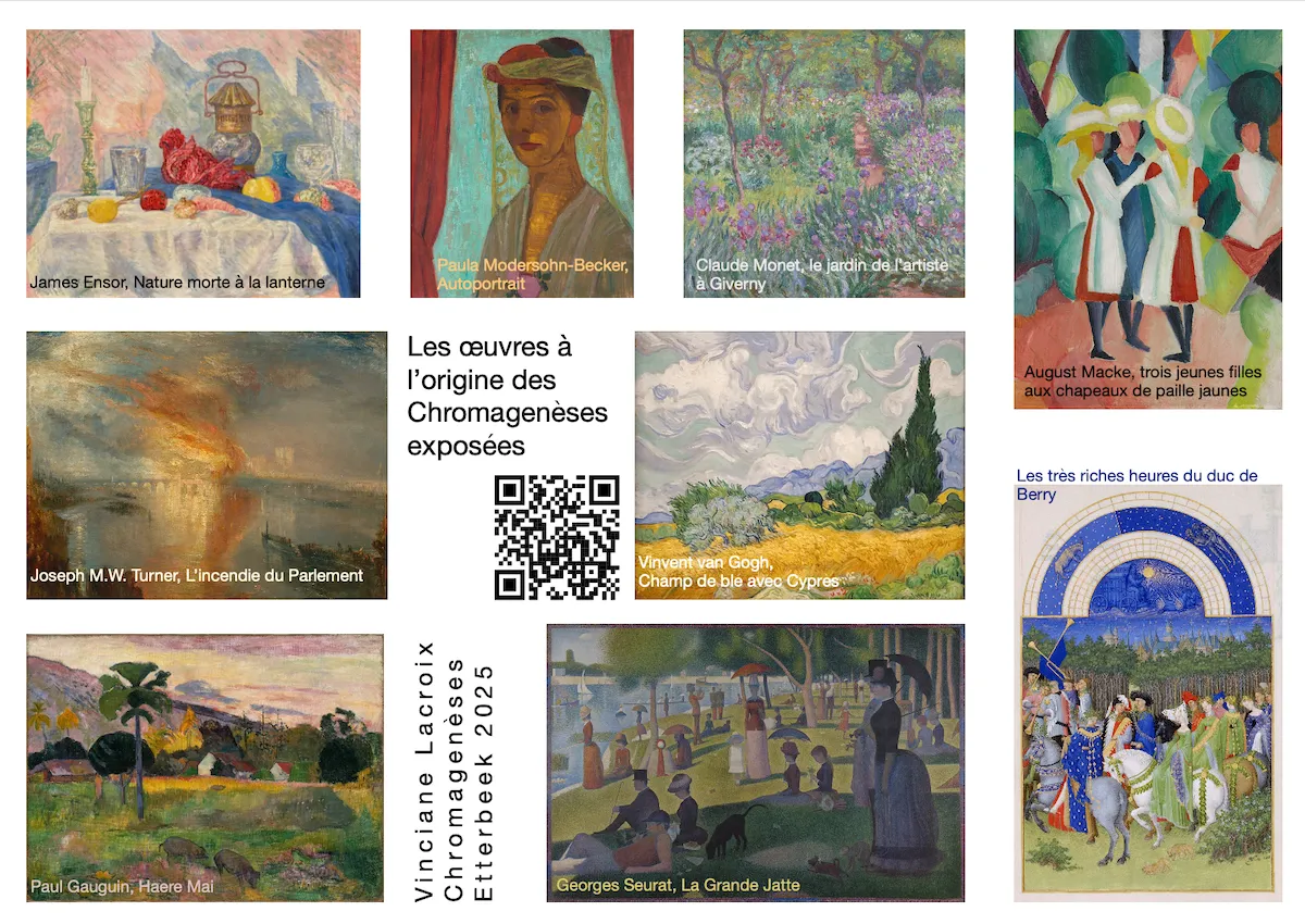 I am participating in a group exhibition with stained-glass artist Yvette Berthels and sculptor Hugo Boccara. The exhibition takes place at the Etterbeek Town Hall from 11/12/2025 to 5/01/2026, open from 8 am to 4 pm (until 7 pm on Tuesdays). In addition to the new series of Chromageneses, you will also see those exhibited at the Sofitel Hotel in 2024.